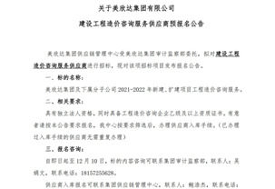 美欣達集團有限公司建設工程造價咨詢服務供應商招募